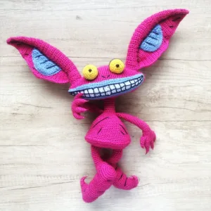 Ickis-inspired crochet pattern – handmade amigurumi monster toy with tall ears and 90s cartoon nostalgia by Monoxatoys